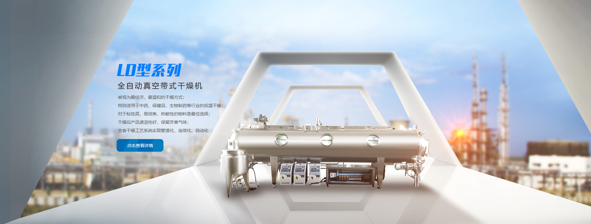 主要研發和生產具有自主知識產權的中藥提取濃縮成套設備、中藥浸膏低溫真空帶式連續干燥機等產品